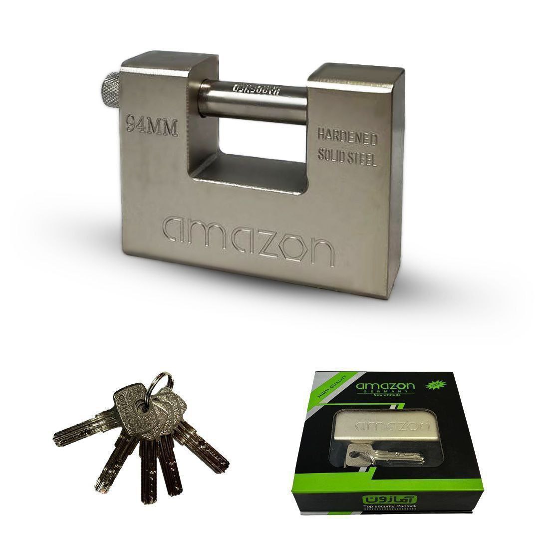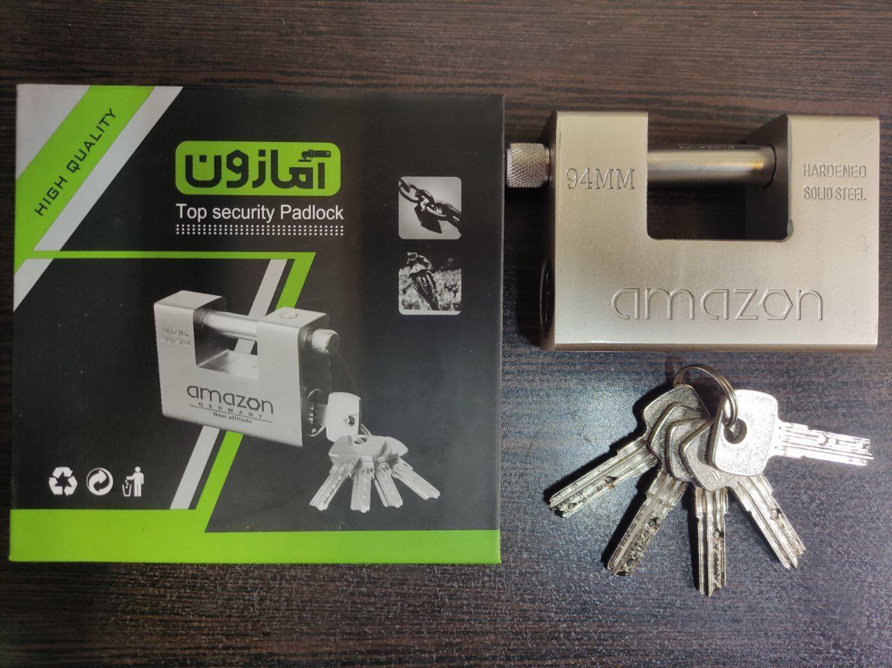 ابزار اتصال تقدیم میکند قفل فولادی سایز 94 شرکت آمازون 5کلید بوده و توپی آن برنج میباشد و بسیار با کیفیت میباشد.