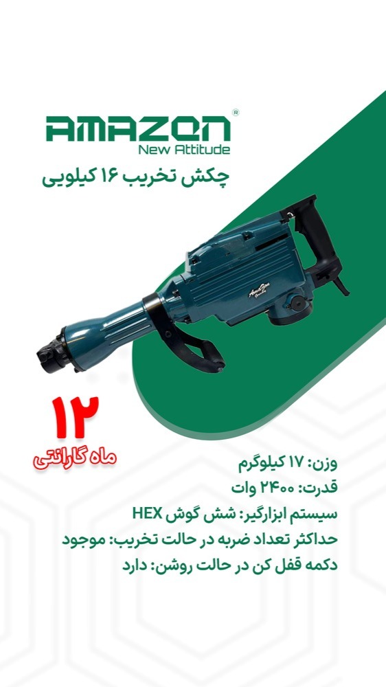 چکش تخریب 16 کیلویی آمازون مدل DH16، ابزار قدرتمندی برای پروژههای تخریب و ساخت و ساز است. با موتور قوی و طراحی ارگونومیک، این چکش به شما امکان میدهد کارهای سنگین را با سرعت و دقت بالا انجام دهید. ایدهآل برای حرفهایها و کسانی که به دنبال عملکرد بینقص هستند. همین حالا تجربه کنید و بهرهوری خود را به حداکثر برسانید!