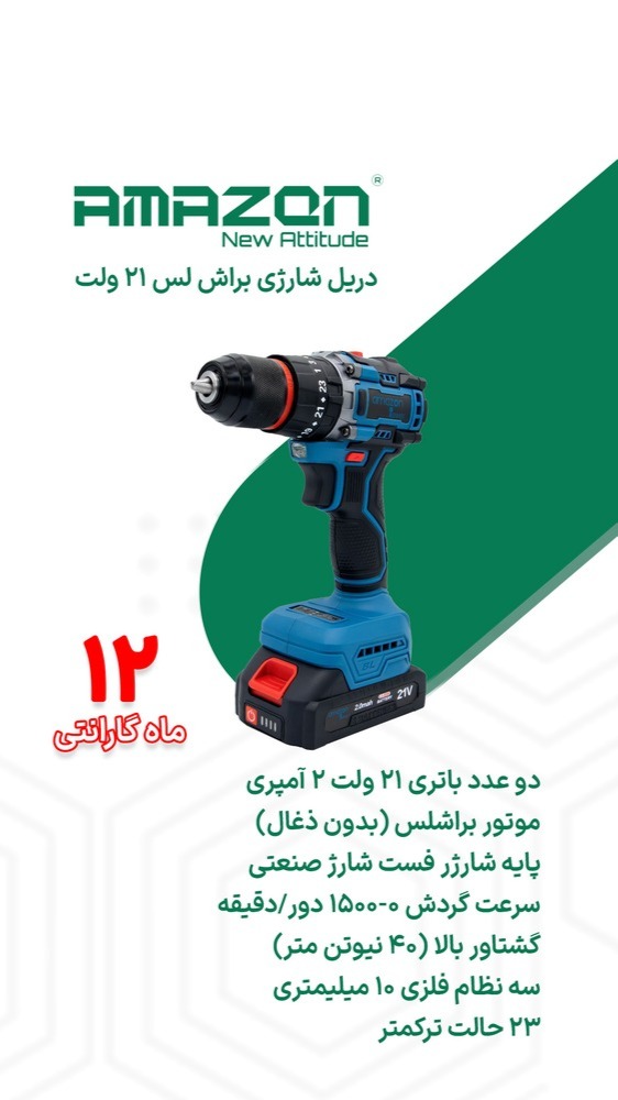 با دریل شارژی 21 ولت براش لس آمازون مدل BL-21V، کارایی و عملکرد حرفهای را تجربه کنید! این دریل با قدرت و ماندگاری بالا، ایدهآل برای پروژههای خانگی و صنعتی است. طراحی ارگونومیک، وزن سبک و عمر باتری طولانی، انجام هر پروژهای را سادهتر و سریعتر میکند. همین حالا اقدام کنید و ابزار حرفهای خود را بهروزرسانی کنید!